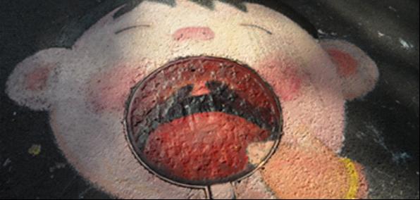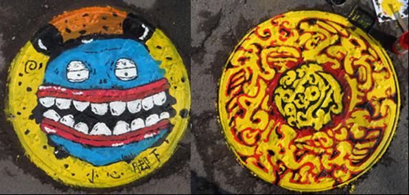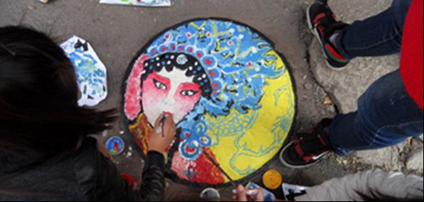 学生60多人自发组织,利用课余时间,以附近林荫小道上的井盖为创作源,通过艺术构思、整体设计、长廊策划,精绘出一幅幅精美图画,使原本不起眼的一个个井盖,变成了大学校园一道道亮丽的风景。据介绍,该创作由美术空间和民间美术两个社团发起,共计对校园北区近30个井盖进行了加工。包括卡通人物、个性图案、篮球图案、京剧脸谱等多种图案。其中,京剧脸谱作为文化国粹和该校的传统专业,备受过往师生关注,很多人纷纷在此驻足留念。