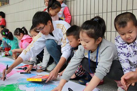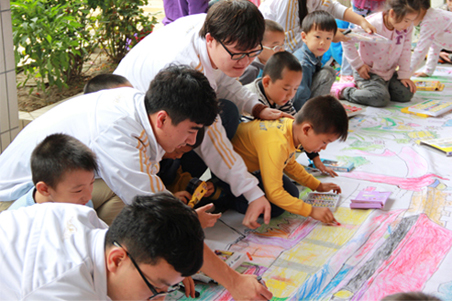 学生支部书记贾娟及院团委刘昂老师的带领下,携手山西师范大学实验小学百余名萌娃,手握缤纷画笔,共绘美好生活,共绘美丽校园,美丽祖国。 活动过程中,可爱的小学生们在大哥哥、大姐姐的细心指导和合作下,欢乐涂鸦。一根根画笔在小朋友的手中,用他们童真的绘画语言,稚嫩又形象的描绘出对校园、对社会、对国家的热爱之情。铺满地面的巨幅彩色画面,承载了此次活动过程中满满的爱心和欢乐。绘画完成后,打游戏赚钱