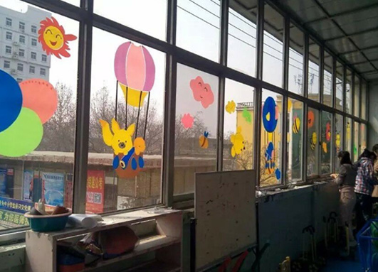 此次活动以“海,陆,空”为不同楼层的主题,利用剪贴纸效仿剪镂空花纹,剪各种动植物,来装饰幼儿园的每一块窗户,使其氛围更加活泼动感。希望这些剪纸可以给小朋友带来新鲜感和兴趣,引领小朋友积极参与艺术剪纸活动,培养他们的审美兴趣、审美仿效能力、审美创造能力。
