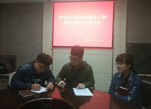 在推进会上,本科生支部书记、特色党建项目负责人贾娟老师介绍了“学生党员1+3服务工程”的实施情况;老党员代表许李平、张源同学汇报了自己一年来开展活动的情况、主要收获和下一步的工作建议。本科生支部委员吕金光老师宣布了新党员联系宿舍和结对班级名单;本科生支部委员、院团委负责人刘昂老师带领大家认真学习了三项规章制度即《打游戏赚钱