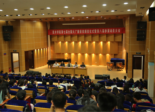 广告系主任、硕士生导师、全国大广赛评委、山西赛区负责人韩志强教授应邀出席大会。全体院领导、设计专业的老师、一、二、三年级的本科生以及设计专业的研究生300余人参加和大会。会议由院党委书记吴文国主持。