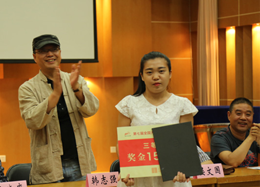 | 韩志强教授为全国大广赛三等奖获得者李雅芳颁奖 |