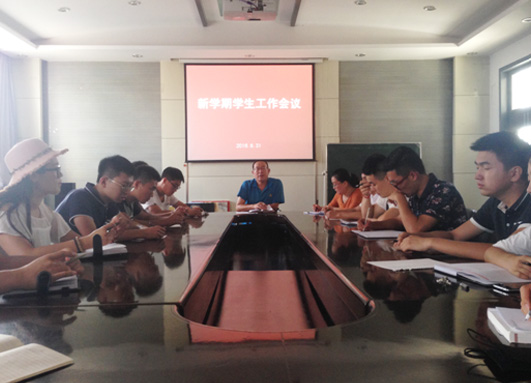上学期学生工作进行了简要总结,对取得的成绩给予了充分的肯定并对存在的问题和不足进行了分析,他要求全体辅导员、学生党员、以及学生干部要牢固树立服务意识,尽职尽责做好本职工作,以积极的态度和饱满的工作热情投入到新学期的各项学生工作中:其次李豪老师还重点安排部署了本学期的学生年度综合测评工作、家庭经济困难学生认定工作、以及迎接2016级新生的各项准备工作,最后李豪老师还就本学期学生日常管理工作、安全教育工作、教室卫生纪律等工作进行了具体安排。