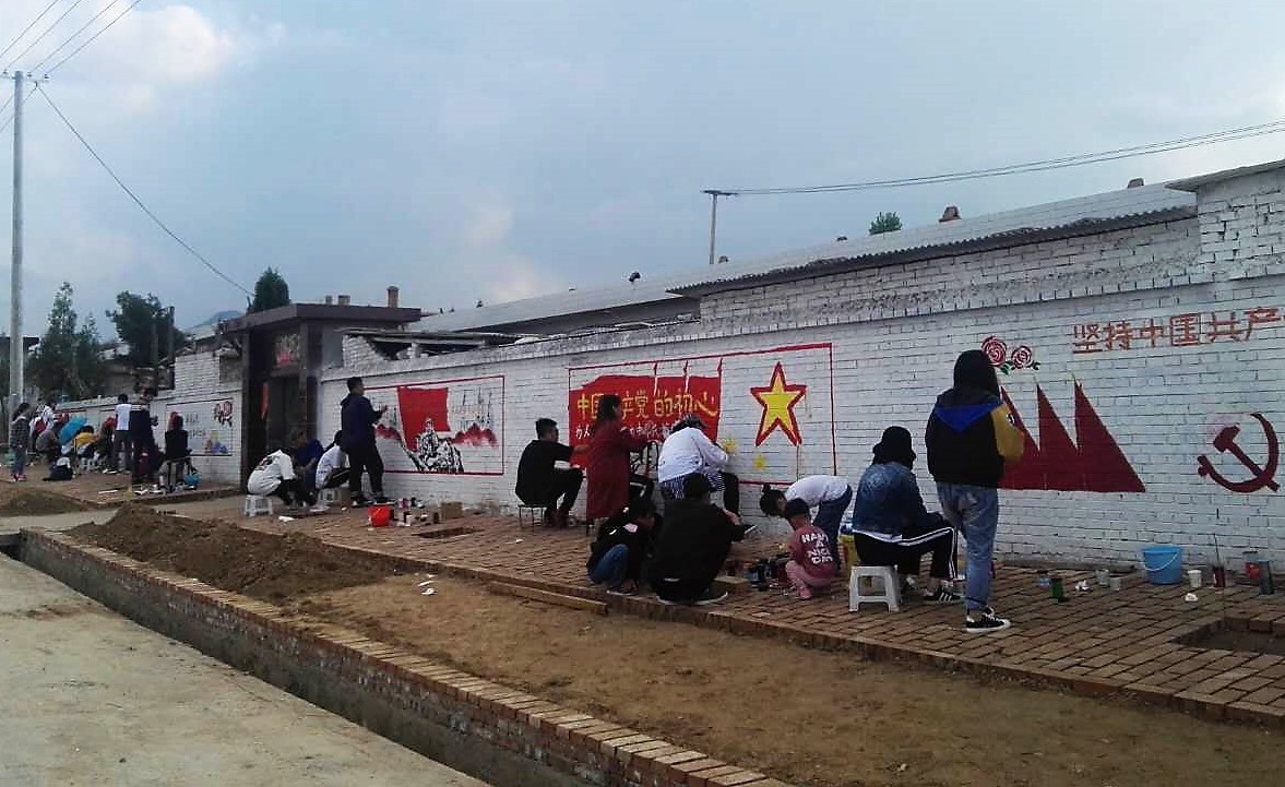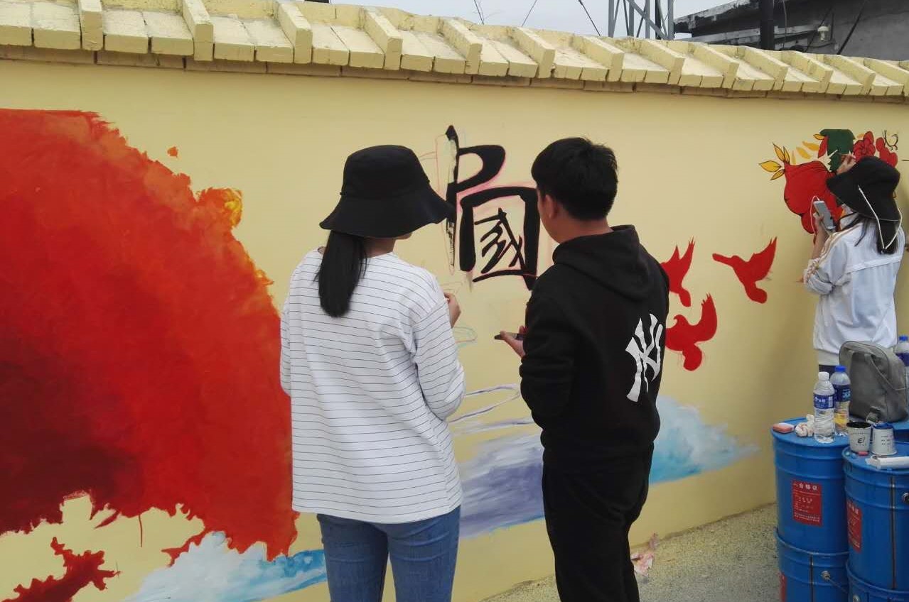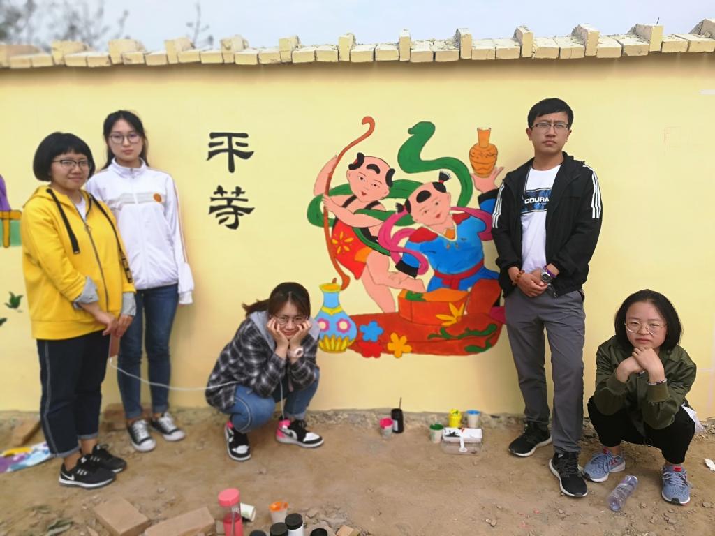 实践队基于专业特长,学以致用,通过艺术墙绘、调查走访、服务宣传等形式宣传习近平新时代中国特色社会主义思想,以丙烯、画笔为绘画材料,以党的十九大精神、社会主义核心价值观等为内容,两天共绘制了24幅墙绘作品,获得了当地群众的好评。