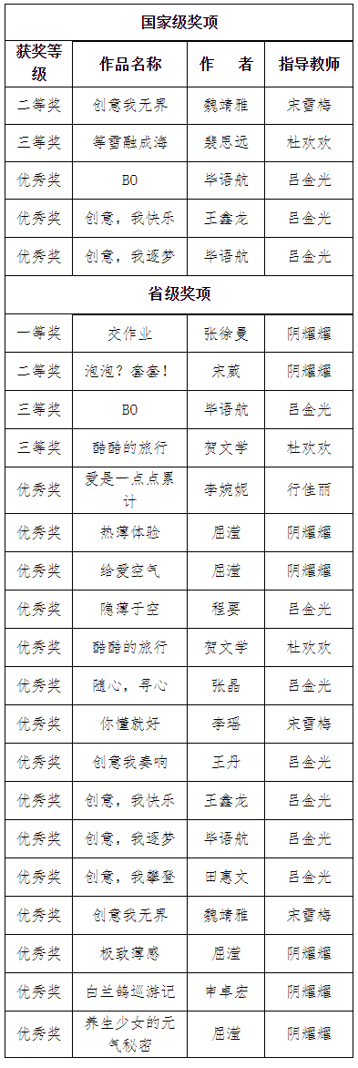 从第7届开始参加到第10届为止共获国家奖15项,山西省赛区等级奖52项。
