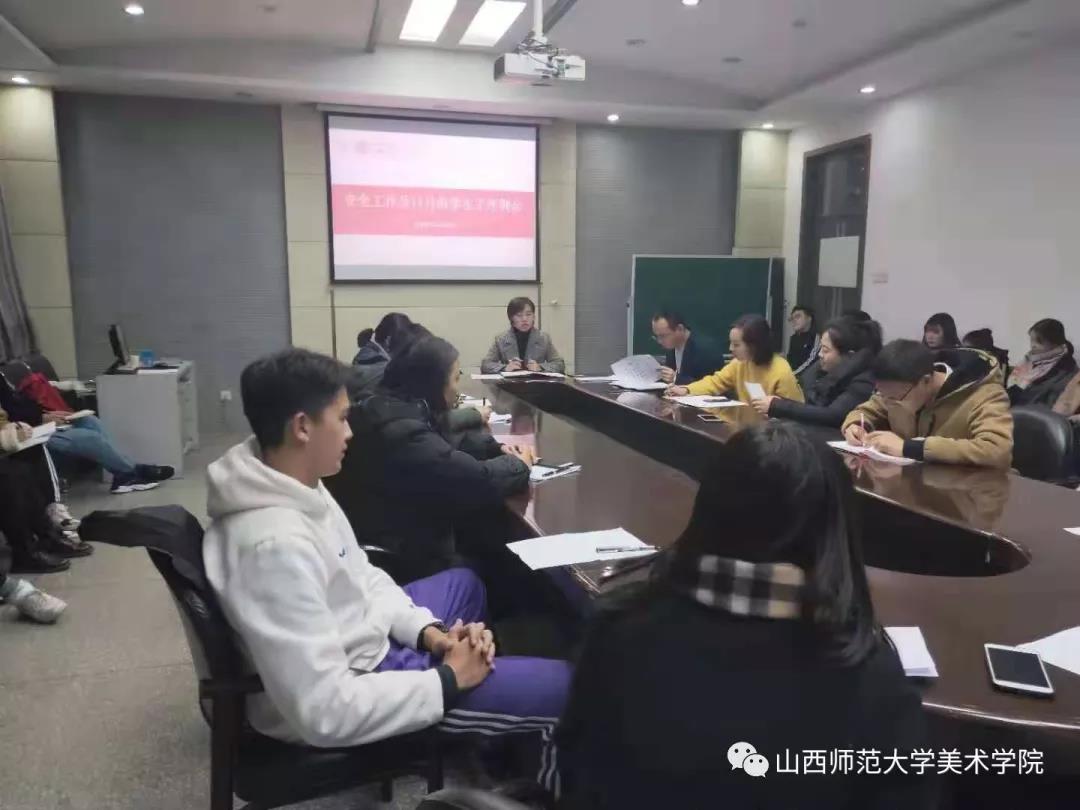 近期学生工作进行了安排部署。一是各位辅导员老师要加强对学生的防火安全和财产安全教育,正值冬季火灾火灾高发期,各位辅导员及院学生会自律部门一定要深入到宿舍进行火灾隐患的排查工作,坚决杜绝安全漏洞。二是,对于接下来即将进入的考试周,各班辅导员要抓好学生的考风考纪教育,督促学生提前复习,各位学生干部也要起到先锋模范作用,诚信应考,杜绝考试作弊。