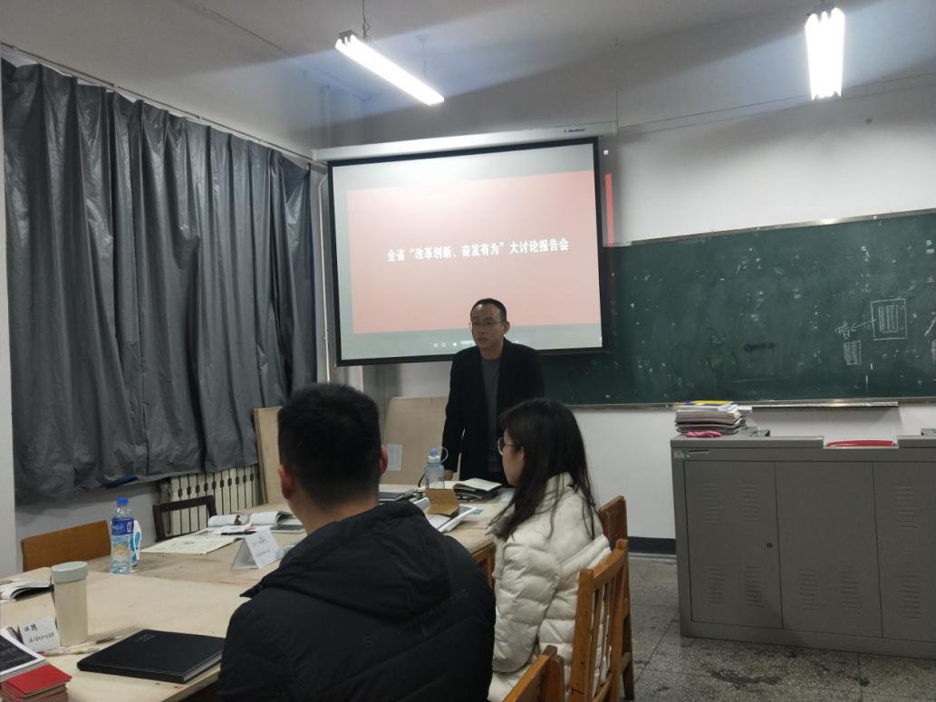 本科生党支部于学生画室召开“改革创新、奋发有为”大讨论集中学习讨论会,集中观看全省先进典型报告会,本科生党支部书记、全体学生党员参加学习。会议由支部书记杜丰之主持。