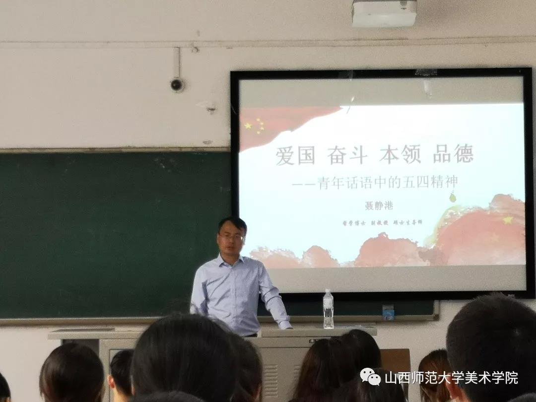 聂静港老师为大家讲授了“爱国、奋斗、本领、品德”——青年话语中的五四精神。以辛亥革命、新文化运动为引导,结合习近平总书记五四精神的重要讲话,指出当代青年应当练就过硬本领,锤炼品德修为,主动承担的历史所赋予的责任和使命!