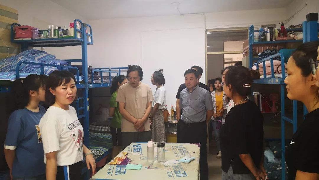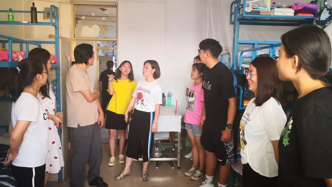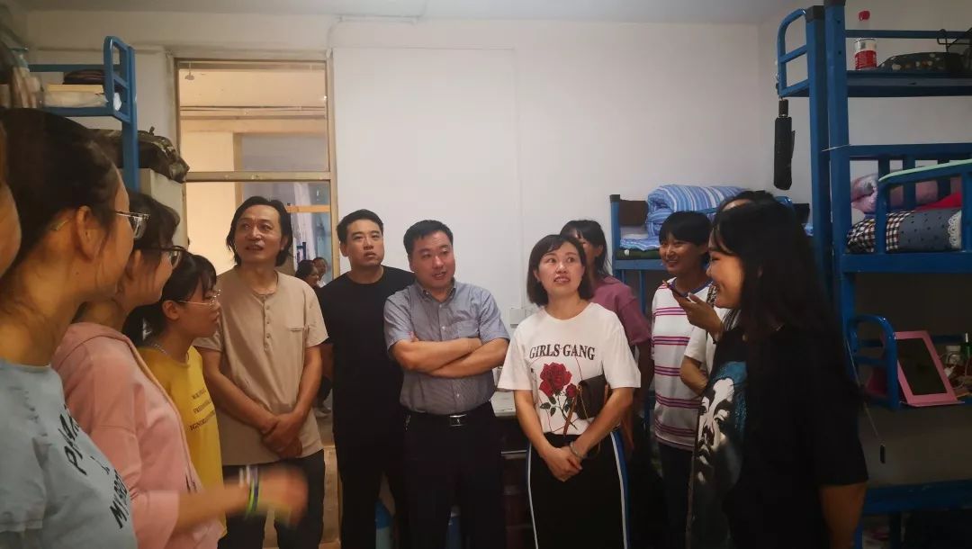 党委书记史晋奎、院长李晓庵、党委副书记庞丽娟、副院长郑煜川、专职辅导员池圆圆及团委学生会一行,在党委书记史晋奎的带领下深入学生宿舍看望2019级新生,并与新同学们进行了亲切的交谈,对他们的住宿环境、生活需求等问题进行了关切询问,提醒新生用电安全和卫生问题,并叮嘱同学们要团结友爱,尽快适应大学生活,做好学习生活合理规划。在宿舍文化布置方面,提倡同学们利用自己的专业优势进行统一的宿舍布置,让自己的宿舍变得更干净、舒适。庞书记亲切嘱托同学们要团结友爱,尽快适应大学生活,做好学习生活合理规划,鼓励他们以师大主人翁的心态,尽快熟悉校园环境,投入到全新的学习生活中去。