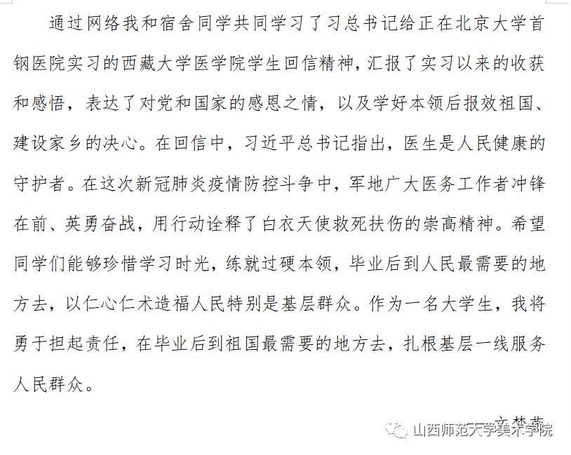 微信公众平台分享学生党员关于回信精神的心得体会。