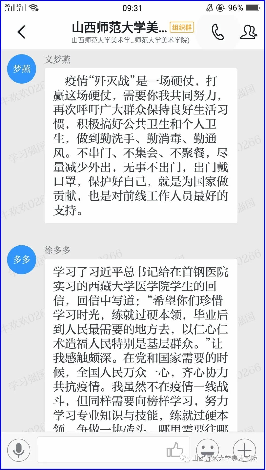 会议最后,各位学生党员还在支部群里进行了深度讨论,掀起了学习的新高潮,拓展了抗“疫”的新思路。