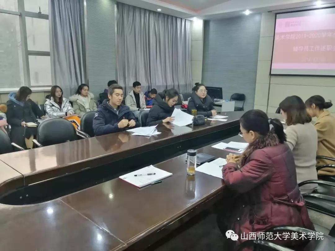 于十号楼四层会议室召开2019-2020学年度第一学期辅导员工作述职会。院党委副书记,学工组长庞丽娟出席会议。辅导员贾娟、池圆圆、王涛、刘昂、高雅言和学生代表参加了此次会议。会议由院党委副书记庞丽娟主持。