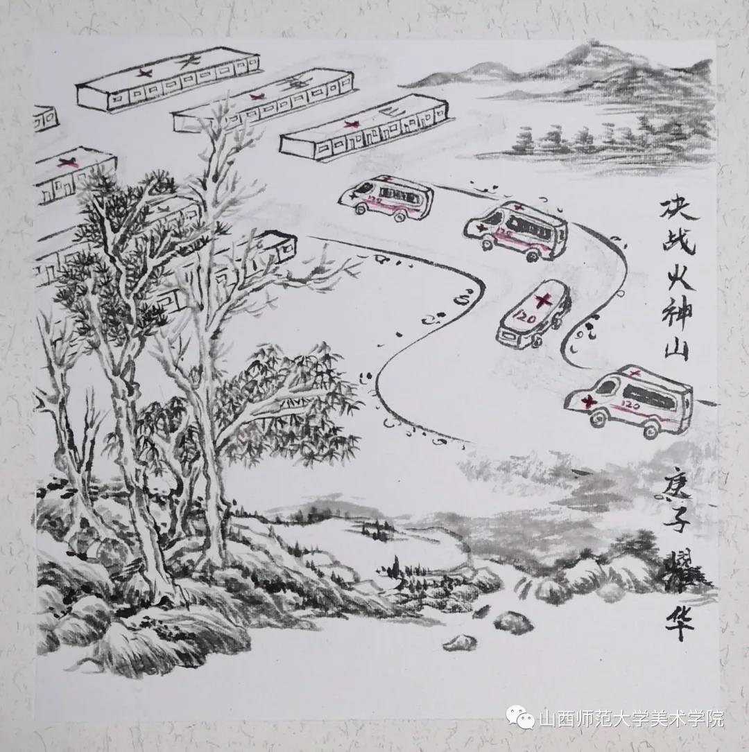 杨耀华老师 《决战火神山》水墨28*28c m