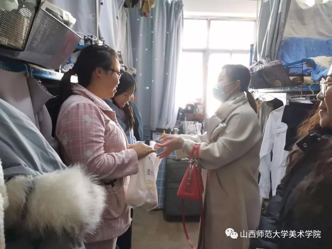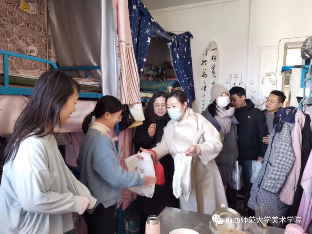 党委副书记、学工组长庞丽娟、辅导员高雅言、高艺深入学生宿舍,走访慰问因参加教师资格证面试而留校的同学们,为大家送去问候与关怀。