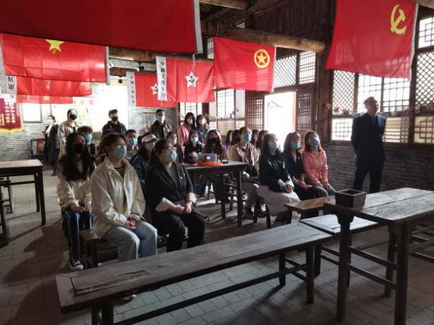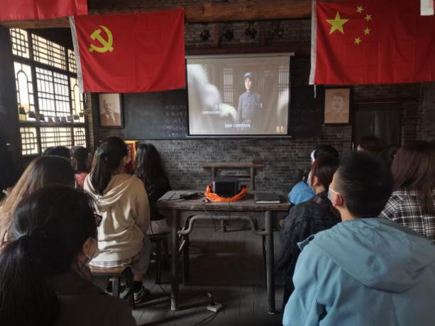 在活动过程中,讲解员为大家详细介绍了秦家大院的红色历史,讲述了革命先辈不平凡的英勇事迹。一幅幅殷红的楹联,一张张泛黄的照片,激发了同学们的学习热情。随后,大家一同观看红色影视片段,深刻了解了贺绿汀《游击队歌》作品的背后创作故事。观影结束后,全体党员面对党旗,重温入党誓词。庄严的誓词,铿锵有力的宣誓使每一个人的心灵再一次得到了净化。最后,大家齐唱红歌,向革命战争年代致敬。