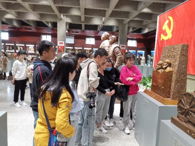 在雕塑文化馆内,工作人员首先对红色雕塑的创作背景,以及作者宿青平先生的个人简介向同学们进行了详细的介绍,随后同学们依次有序进行参观,在观看红色雕塑的同时,同学们也深入了解了雕塑背后所蕴含的红色精神以及中国共产党的百年奋斗史。