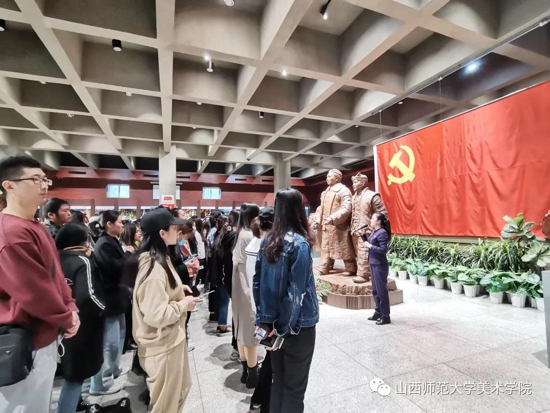 进入红色雕塑馆内,首先由雕塑文化馆工作人员带领全体学生在党旗面前重温党史。随后向同学们介绍了本次红色雕塑的主要创作者宿青平先生简介以及他的雕塑作品创作来源,紧接着带领同学们有序参观了雕塑作品并对部分雕塑作品作详细讲解。