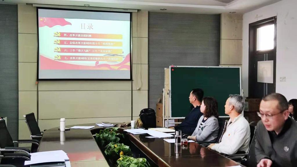 最后,全体教职工共同学习习近平总书记在庆祝改革开放40周年大会上的重要讲话精神并进行研讨。习近平总书记的重要讲话立足现实,为新时代改革开放提出了实践要求,为推进中国改革提供了行动指南,对内有利于凝聚共识、统一思想,对外有利于展现中国大国开放形象,有利于打造人类命运共同体,为世界和平发展做出更大贡献,彰显了马克思主义的强大生命力。学习内容图文并茂,提高了学习效果。