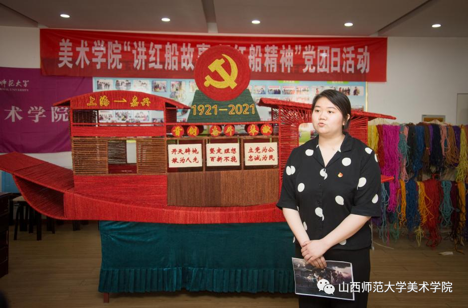 本次活动以“红船边上讲红船故事”的方式,以录制专题视频的形式展开来激发大家学习党史的热情与动力,同学们在红船旁声情并茂的讲述党的光辉历程,歌颂党的伟大成就。本次活动也将专业特点与党史学习相结合,以红船故事和红船精神为切入点,梳理学习中国共产党人的精神谱系以及党史中的美术经典作品。
