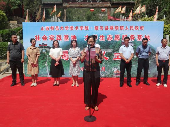 师生的到来表示表示诚挚的欢迎,并与龙澍峪景区负责人分别介绍了襄陵镇及景区的基本情况。随后,双方举行揭牌仪式。致辞中栗军书记指出此次“社会实践基地”和“大学生志愿服务基地”的建立,是对襄陵镇、龙澍峪知名度的有力宣传,同时也为当地文化旅游事业发展提供了人才支撑和资源保障。他表示,希望双方建立长久、稳定、和谐的战略合作伙伴关系,进一步拓展合作领域,加强沟通协作,开创共同携手、共谋发展、共创未来的良好局面。