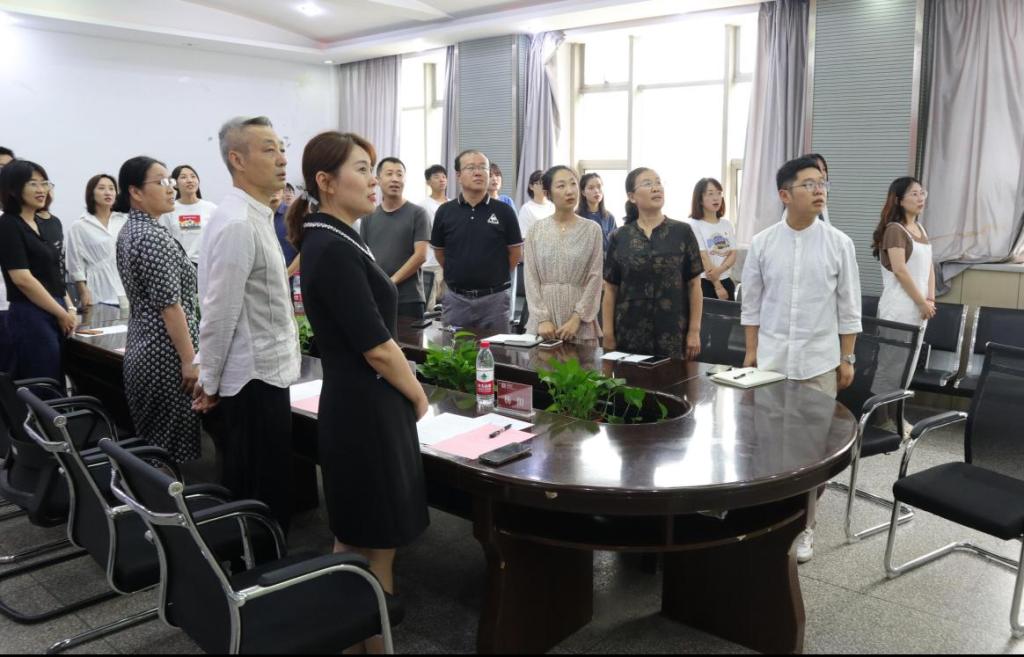 会议第六项,举行新党员入党宣誓及老党员重温入党誓词仪式,全体党员在领誓人的带领下高举右臂、握紧拳头,面向党旗庄严宣誓。