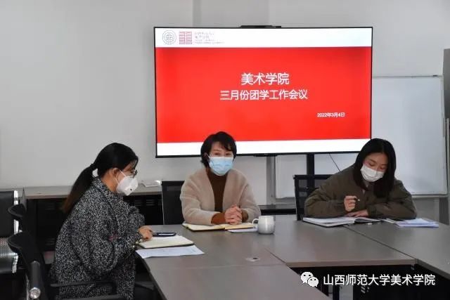 团委在艺馨苑会议室召开了三月份团学工作会议,会议由团委负责老师高艺主持,院党委副书记庞丽娟、专职辅导员杨萌出席会议,团委学生会主要负责人,各班班长、团支书共同参会。