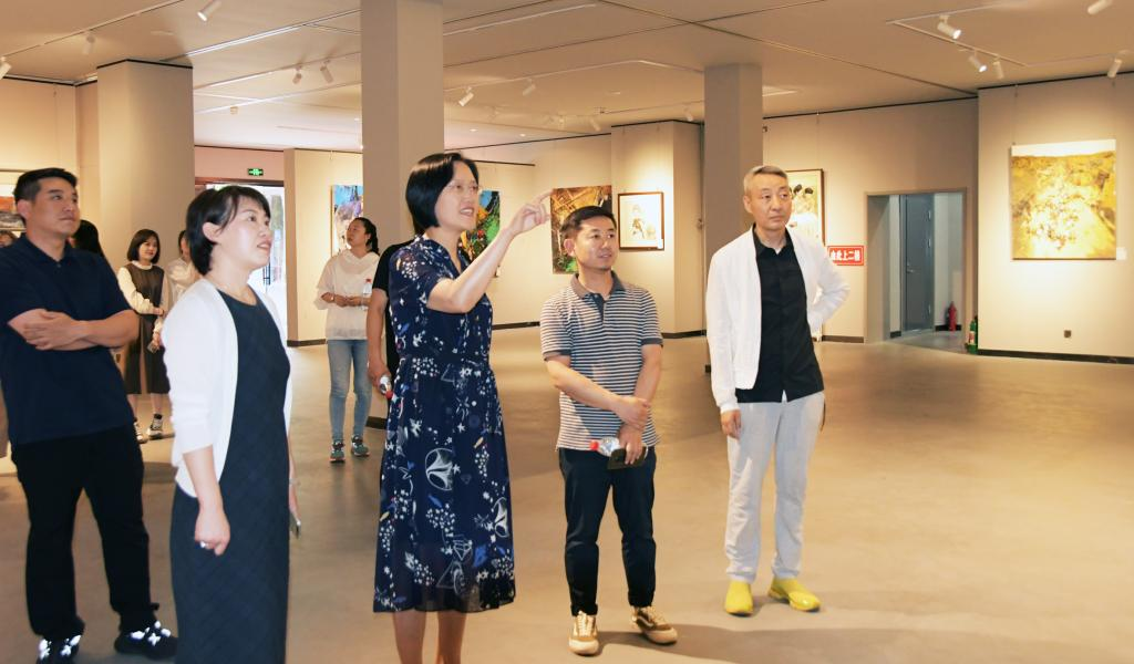 许小红参观了正在展出的“美美与共”优秀师生作品展,并与在场教师进行了互动交流,详细了解了美术馆的基本概况及此次展览作品的绘画手法、风格流变及创作理念等情况。