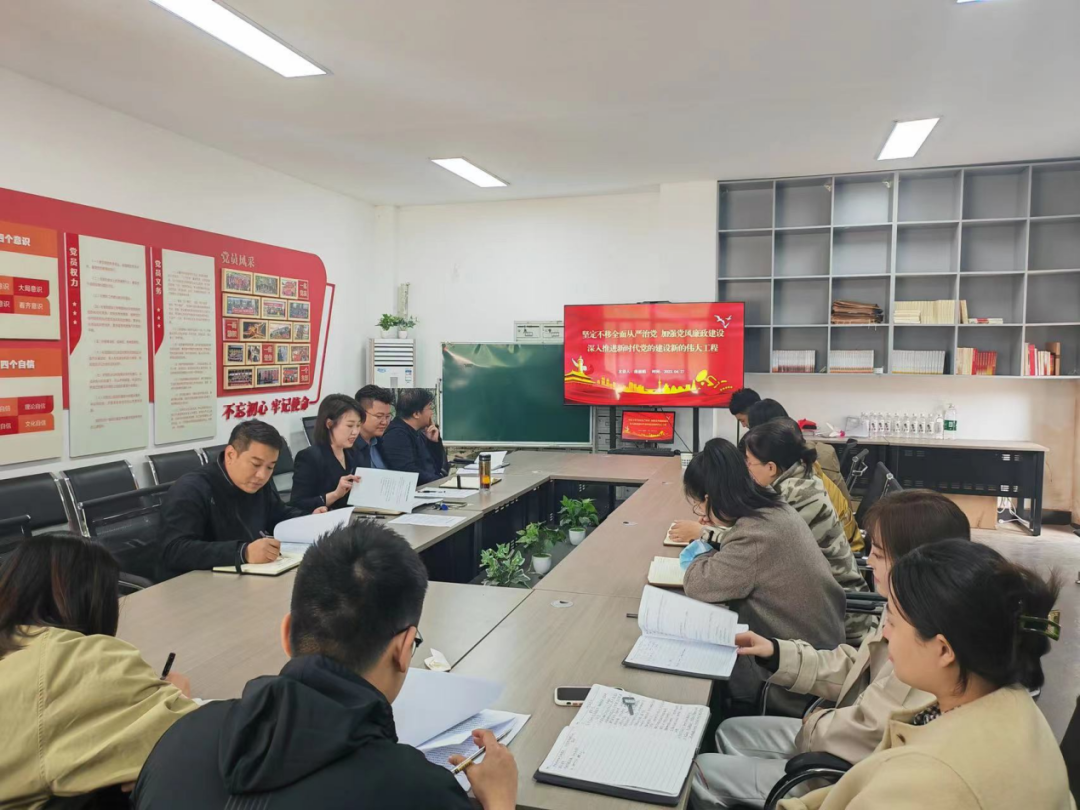 在艺馨苑109会议室召开全面从严治党暨警示教育工作会议,院领导班子成员出席会议,各党支部书记、支委和全体行政人员参会。会议由院党委书记庞丽娟主持。