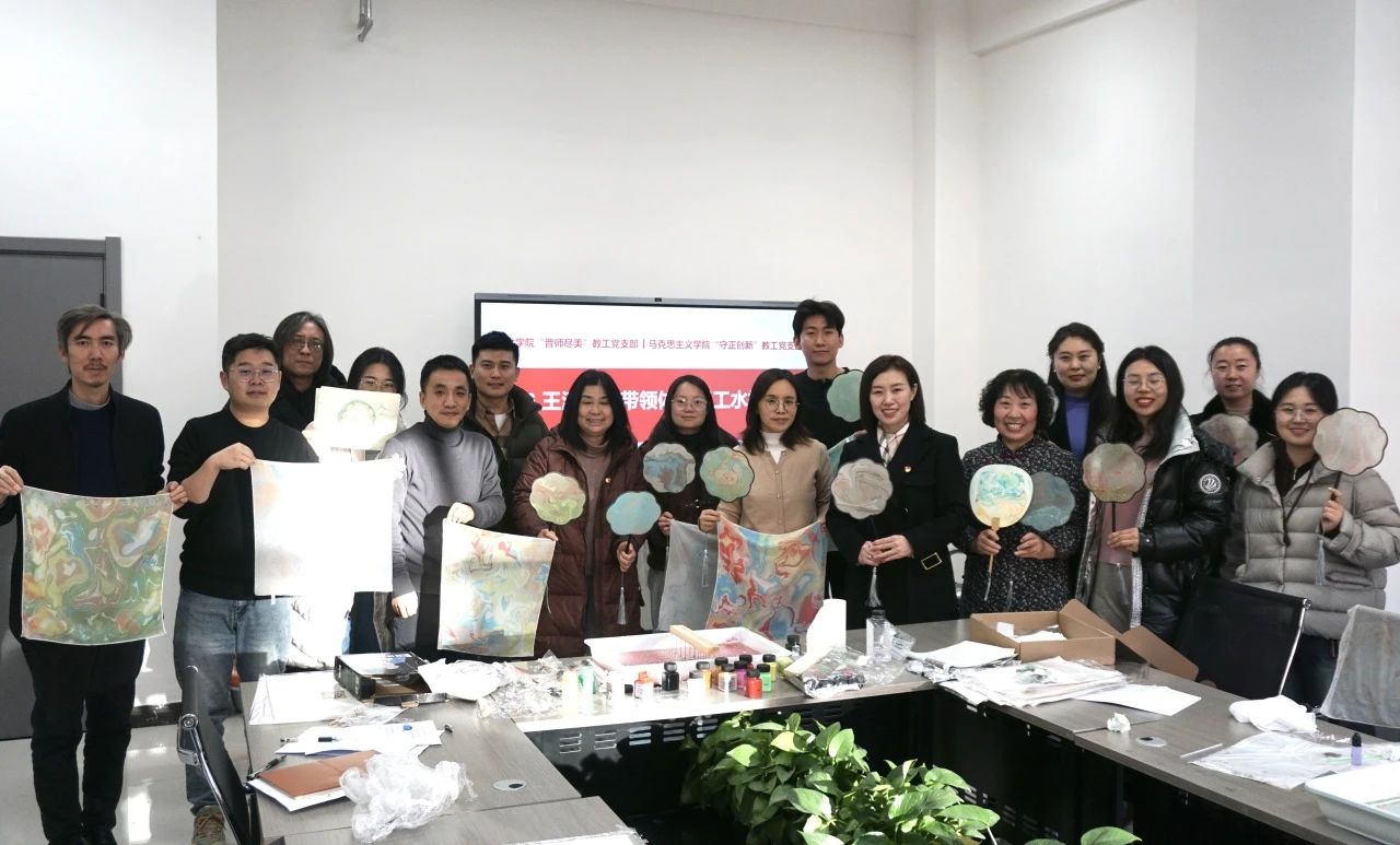 “晋师尽美”教工党支部王涛同志带领全体与会党员教师体验了非物质文化遗产——手工水拓画,教师们不仅在自主创作的体验过程中找到乐趣和挑战,也感受到了艺术创作之美,同时也加强了两个支部党员教师们之间的彼此交流合作与沟通,为加强教师党员队伍建设起到了积极作用。