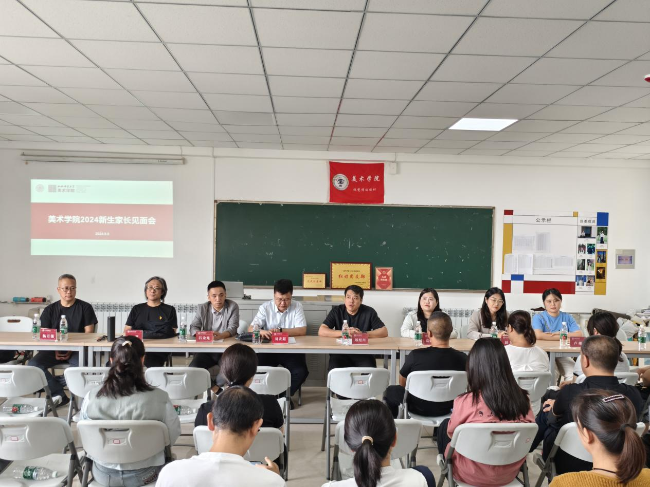 副院长(主持工作)郑煜川、院党委副书记刘宏超、副院长兼视觉传达设计系主任吕金光、美术学系主任张蕾、环境设计系主任刘昂、工艺美术系主任杨月强、新生辅导员卢珊、高雅言参加本次见面会,会议由院党委副书记刘宏超主持。