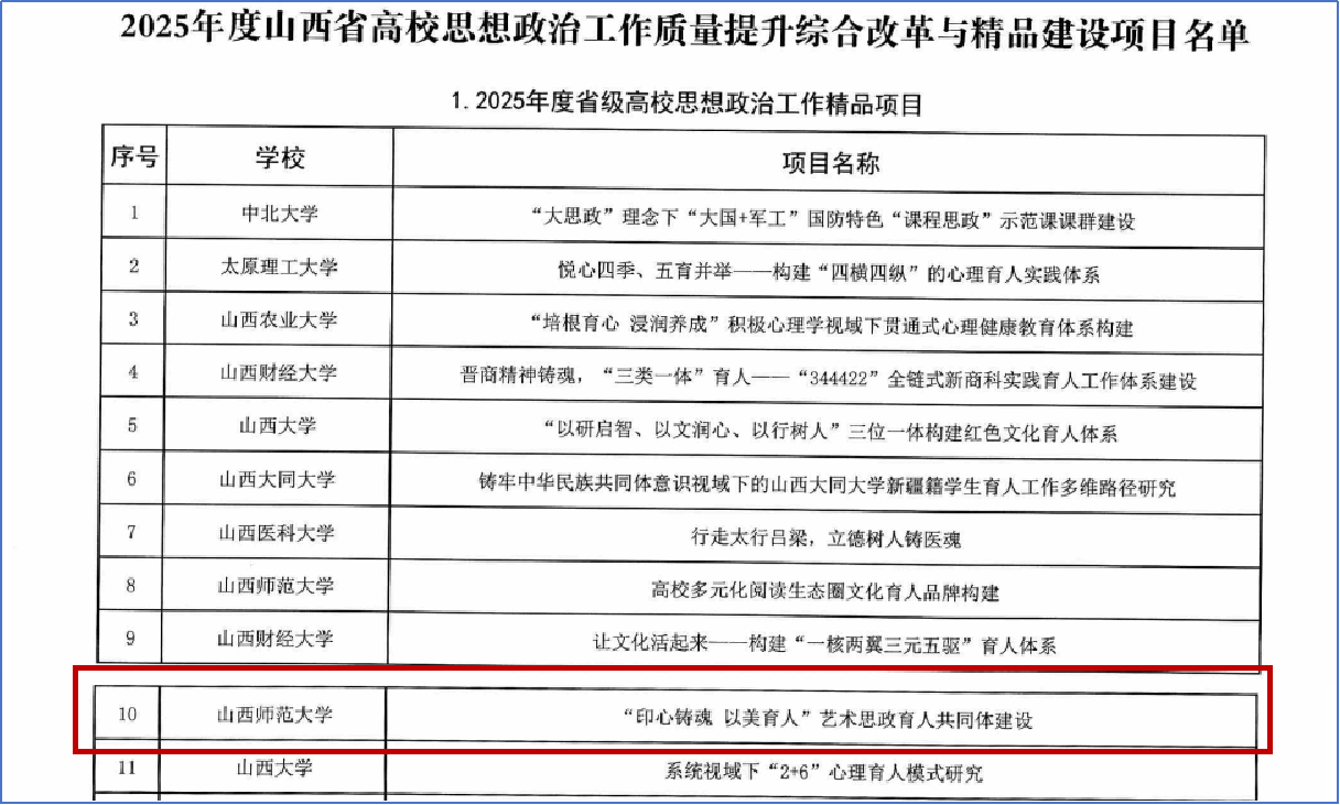 近日,山西省教育厅公布了2025年度山西省高校思想政治工作质量提升综合改革与精品建设项目立项评选结果。经各高校申报、资格审核、专家评审等程序,打游戏赚钱