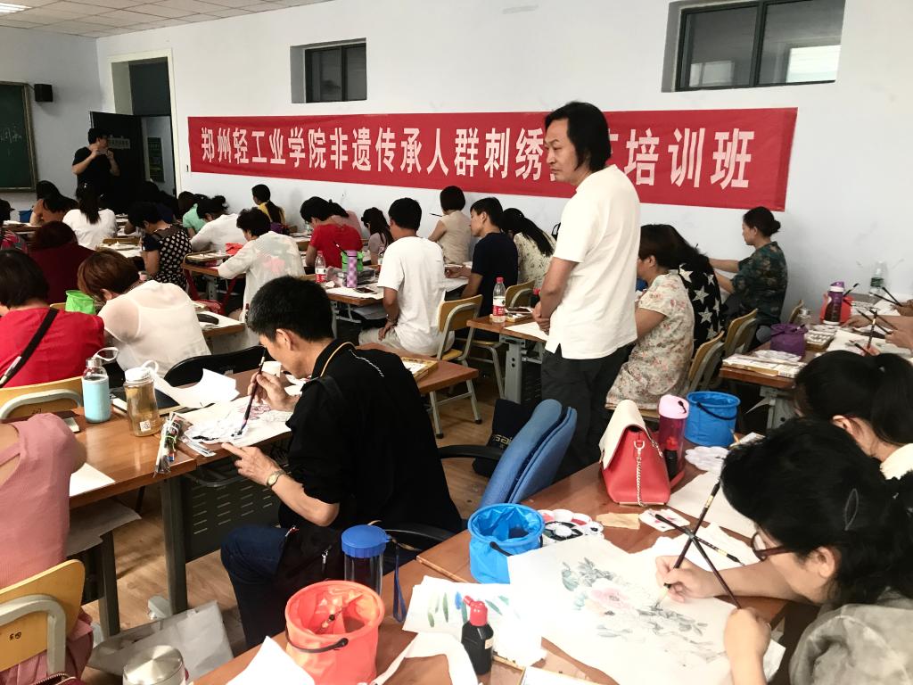 承办文化部、教育部非遗传承人群研培计划的基本情况。会后,李院长一行观摩了正在参加研培计划刺绣班学员的课堂教学,参观了正在举办的2016年度五期研培计划培训学员的优秀作品展。