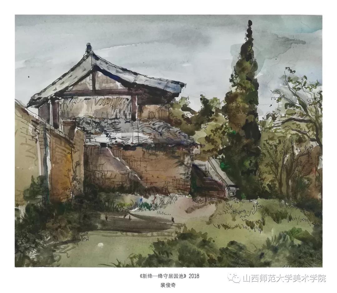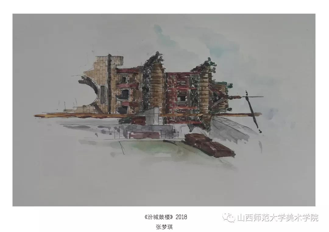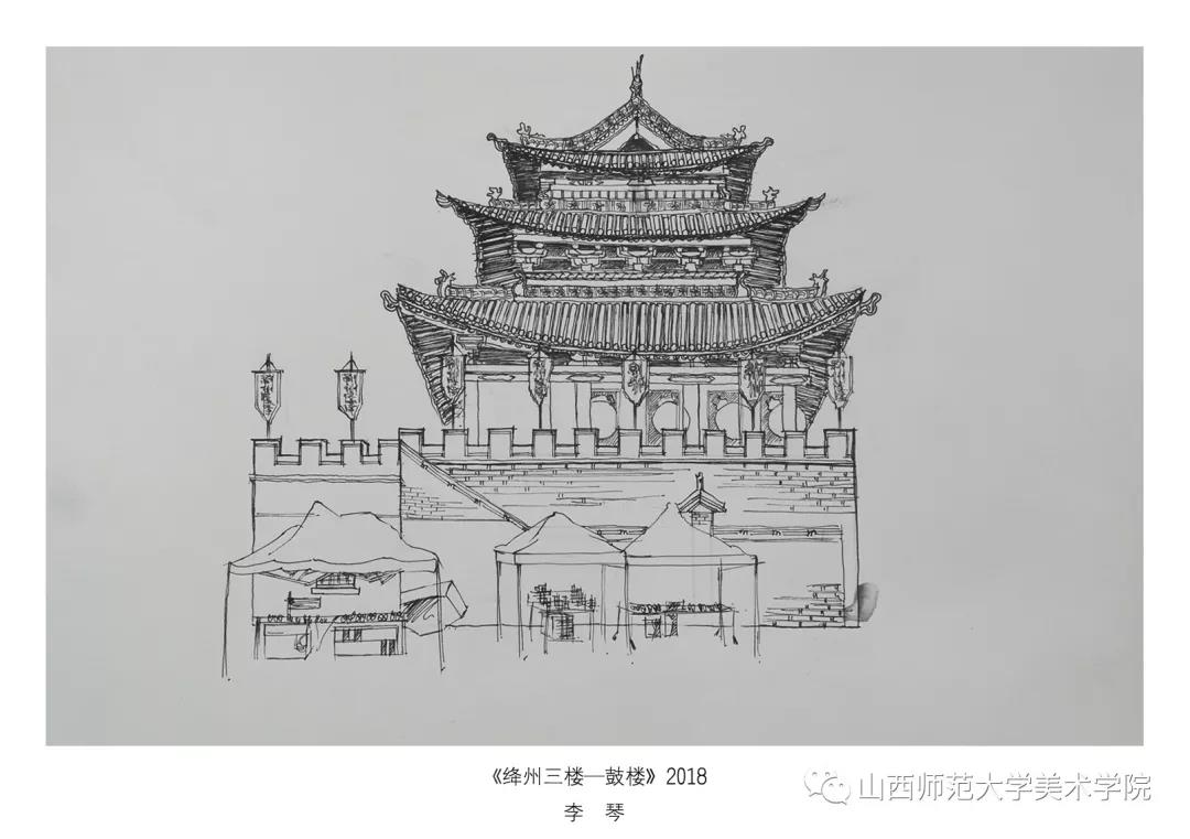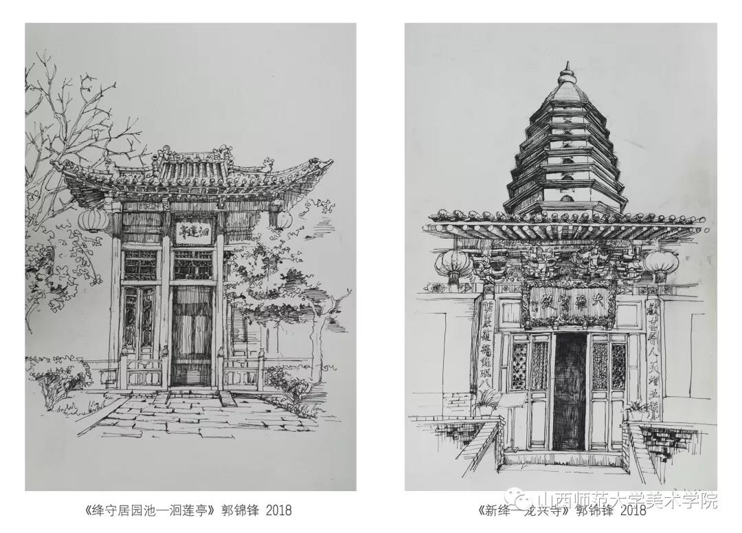 考察作业要求为古建筑及建筑装饰钢笔速写或者钢笔(铅笔)淡彩。实习过程中,大部分同学都能认真的去完成写生,从最后的作业呈现和我每日的观察来看,可能是环艺专业绘画实践较少的原因,同学们在造型、色彩、构图能力还存在或多或少的问题,有的同学是造型能力有限,有的同学是对钢笔淡彩的材料和技法还无法掌控,有的同学是专注与用心程度不够。