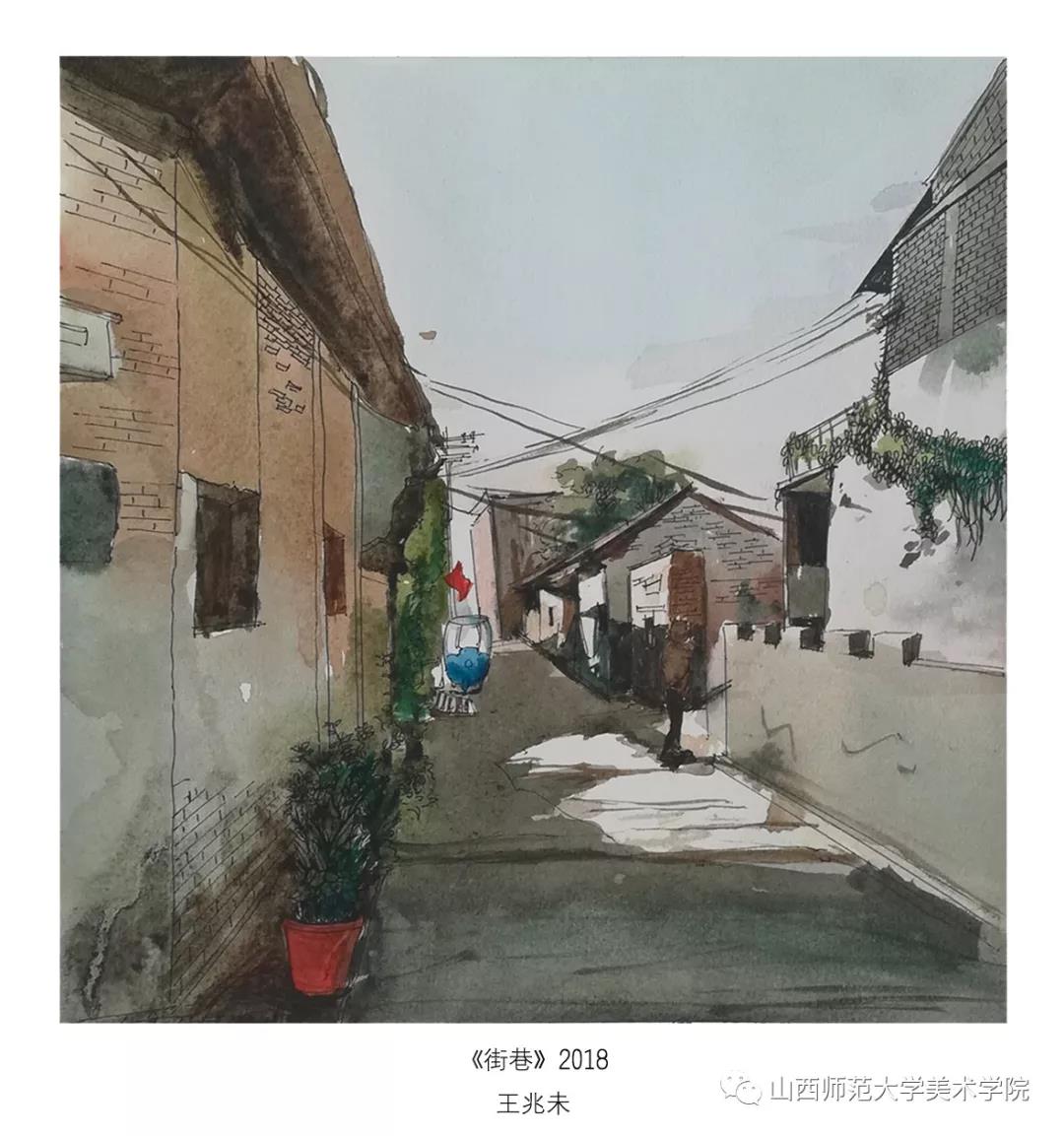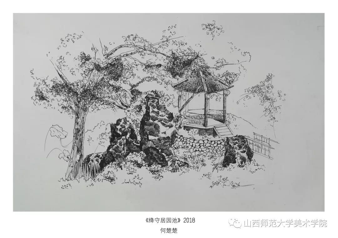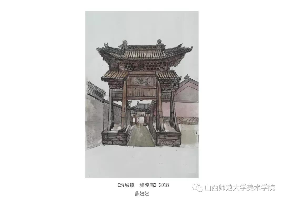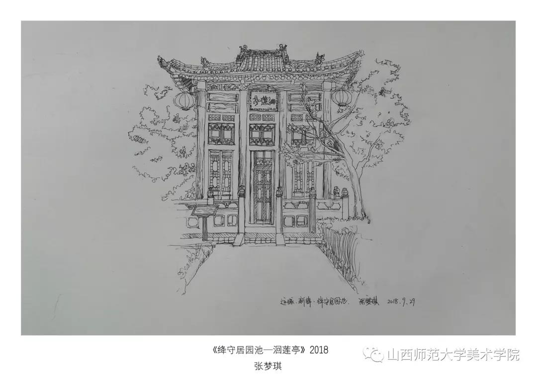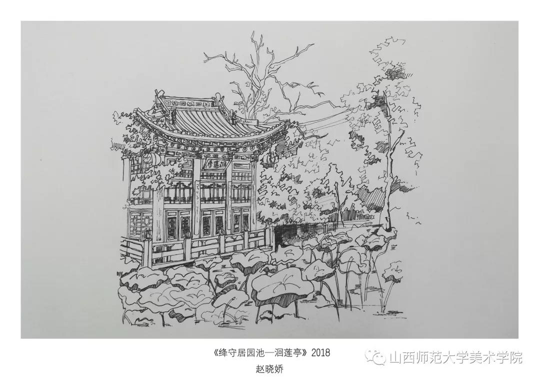 考察作业要求为古建筑及建筑装饰钢笔速写或者钢笔(铅笔)淡彩。实习过程中,大部分同学都能认真的去完成写生,从最后的作业呈现和我每日的观察来看,可能是环艺专业绘画实践较少的原因,同学们在造型、色彩、构图能力还存在或多或少的问题,有的同学是造型能力有限,有的同学是对钢笔淡彩的材料和技法还无法掌控,有的同学是专注与用心程度不够。