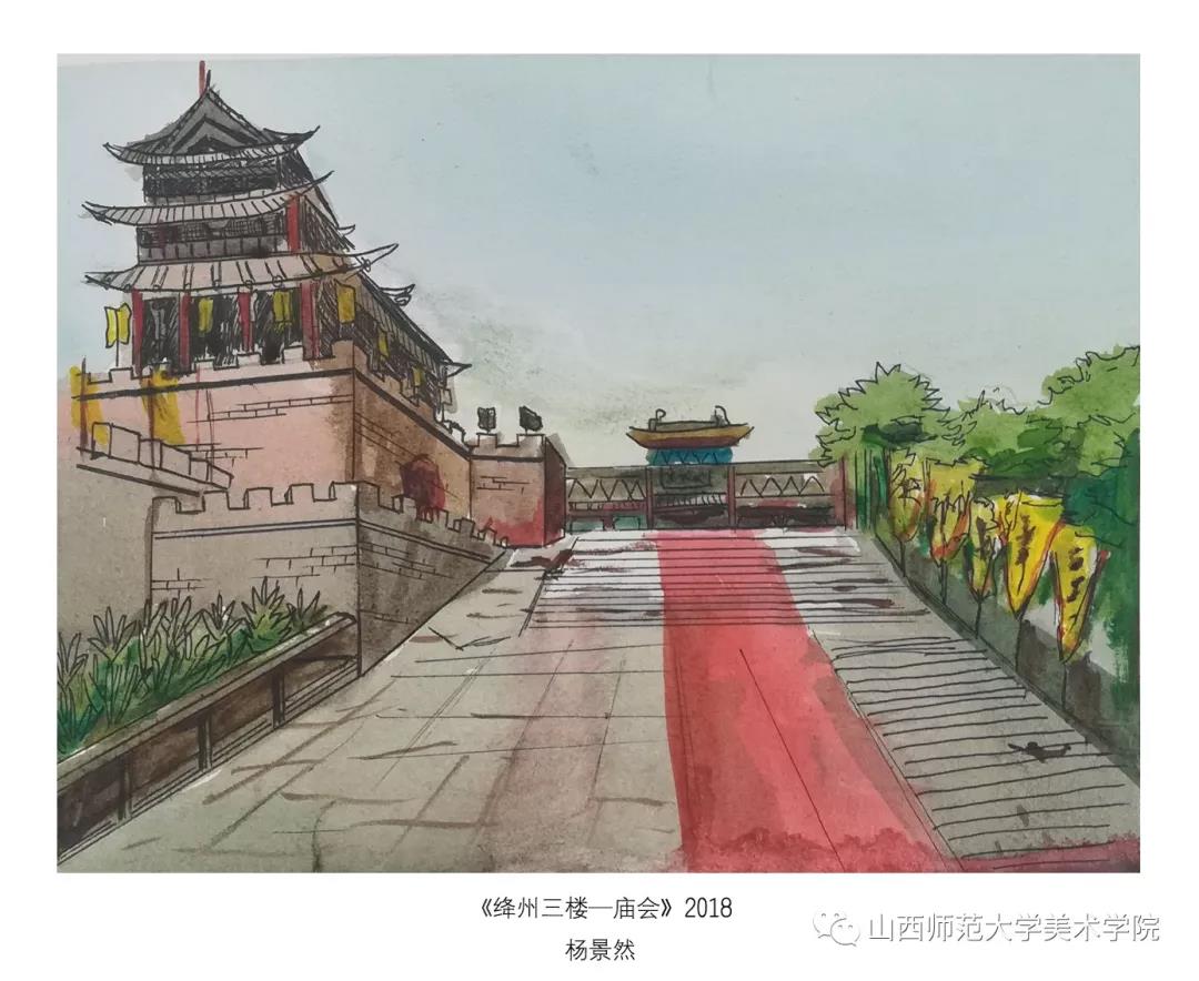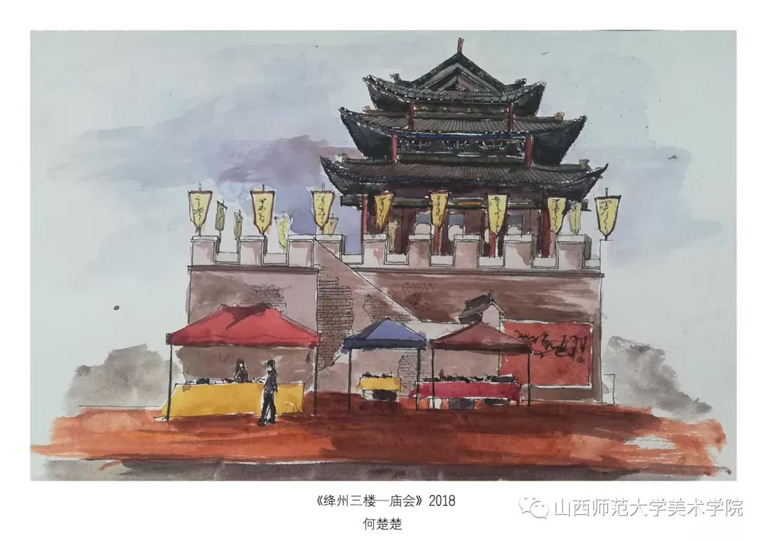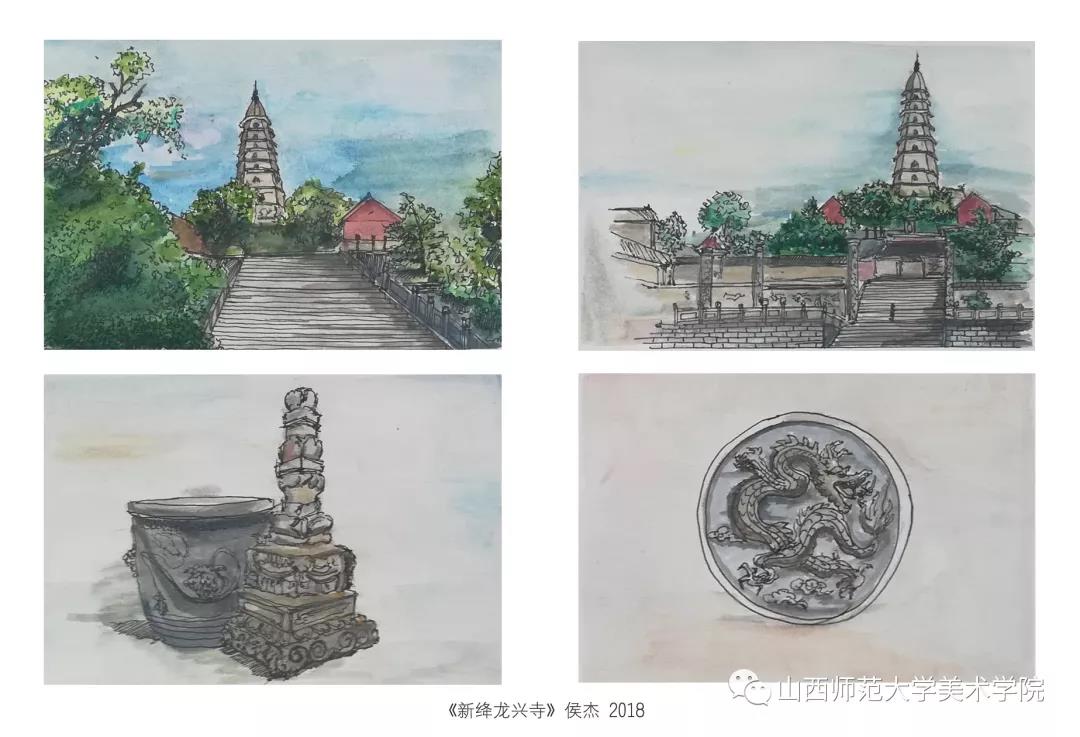本次实习考察目的为晋南地区古建筑艺术考察。晋南现存的木结构古建筑以封建社会中晚期的宗教建筑保存数量最多,价值也最高,时间从唐代至清代一脉相承,环环相扣,完整地代表了中国古代建筑在不同历史时期的风采。由于时间有限,不能考察太多建筑遗存,此次考察选择了襄汾县汾城镇古建筑群和新绛县古建遗存(绛州三楼、龙兴寺、隋代花园,绛州明清民居)为目的地。由于目的地路途不远,考察日程定为当天往返,同学们全天都在户外进行写生绘画,行程紧凑也较为辛苦。