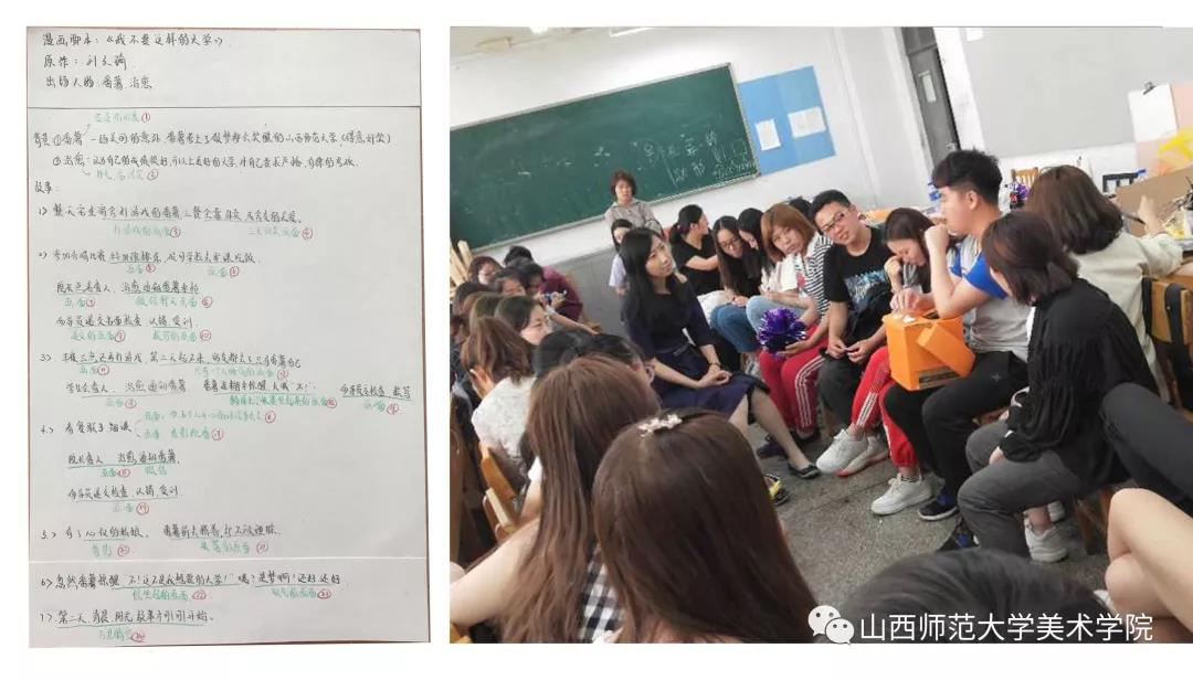 导语:手写脚本(用不同的颜色表达对白与动作)与课堂集体创意、分享现场。