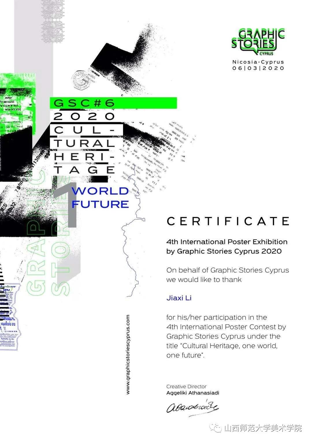 在指导教师徐德记老师的辛勤指导下,打游戏赚钱 18级视传专业李嘉熙同学的海报作品,入选题为"文化遗产,同一个世界,同一个未来”第四届国际海报展。