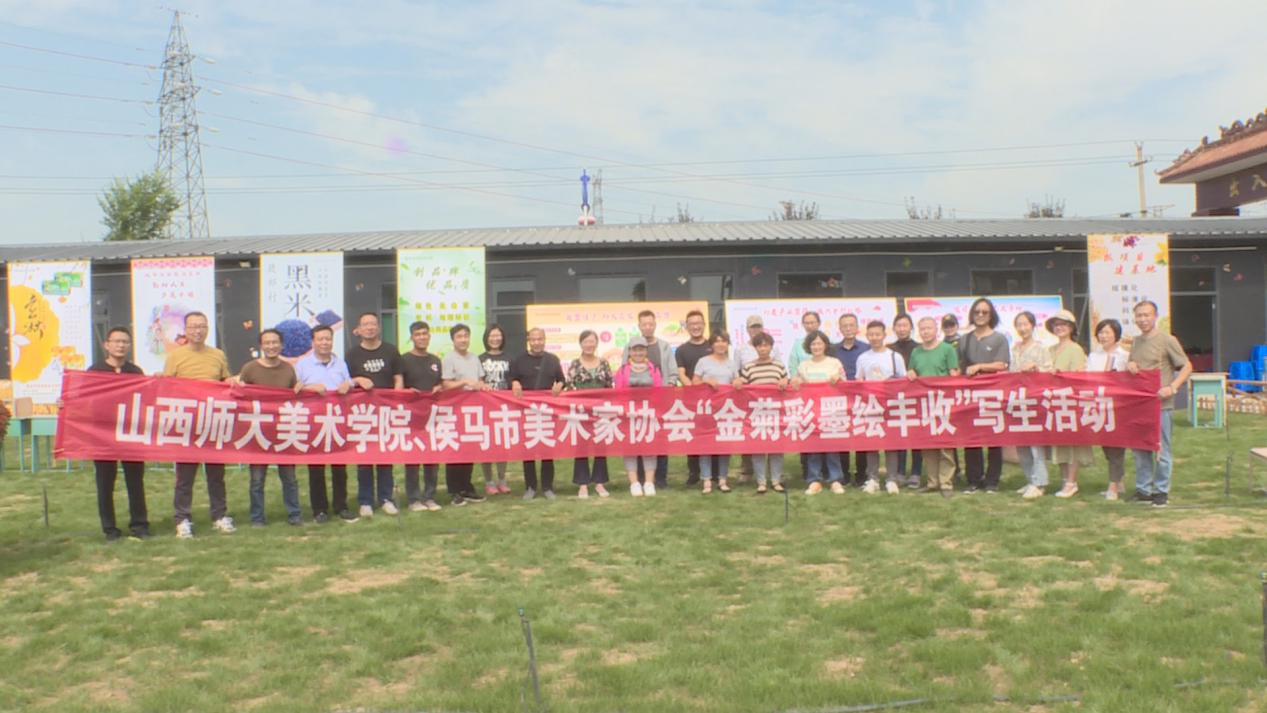院长金小民教授及部分教师共十余人应侯马市高村乡政府及侯马市美术家协会邀请现场参观,并共同举办“金菊彩墨绘丰收”写生活动。