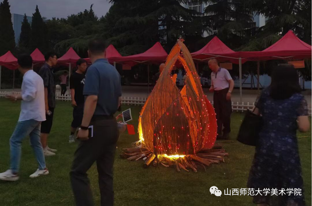 环境艺术设计系刘昂老师介绍了本期项目制教学作品是以“中国设计·青年加油”为课程理念,以献礼中国共产党成立100周年为核心,以“扬帆起航”为设计主题、创新开设的“晋艺·百匠莘心民艺空间设计营”为课程形式,创新我省非物质文化遗产柳编、绳编为创作方式,进行思政艺术作品的设计和制作。此次共建成船旗、星火燎原、书海泛舟、千帆竞逐、搏击等7件校内思政文创作品,以此热烈庆祝中国共产党成立100周年。