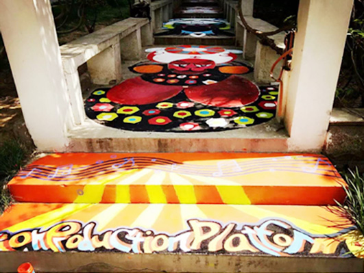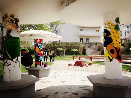 在墙绘活动的现场,同学们积极配合,分工合作,秩序井然,在同学们的认真绘制下,一幅幅墙绘作品就呈现在大家面前,学校周围的围墙、楼梯、蘑菇亭等成了色彩缤纷的图画世界,给大家带来了一个舒适惬意环境,成为校园里一条亮丽的风景线。墙绘结束后,备受师生们的青睐,大家纷纷驻足品评,赞不绝口。