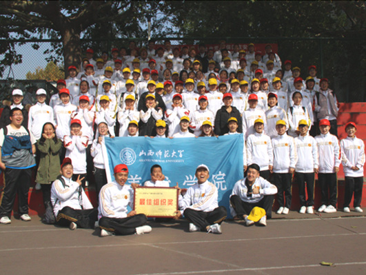 在山西师范大学2016级新生广播操比赛中,以9.54分的好成绩取得本次广播操比赛甲组“最佳组织奖”的优异成绩。