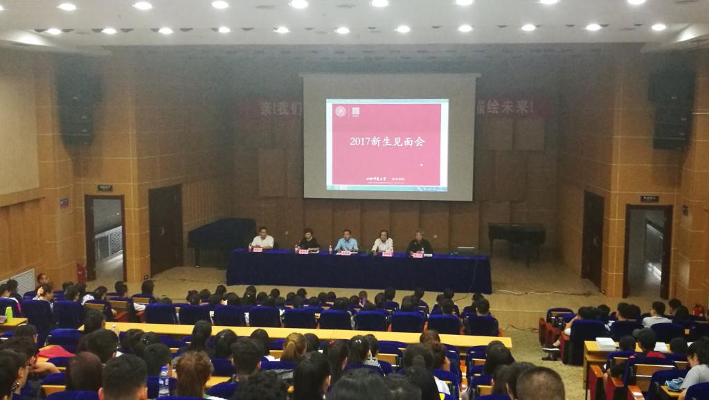 在音乐厅召开了2017级新生见面会。院党委书记史晋奎、院长李晓庵、院党委副书记庞丽娟、副院长张一平、副院长郑煜川出席见面会,美院部分教职工及2017级全体新生参加了见面会。大会由院党委副书记庞丽娟主持。