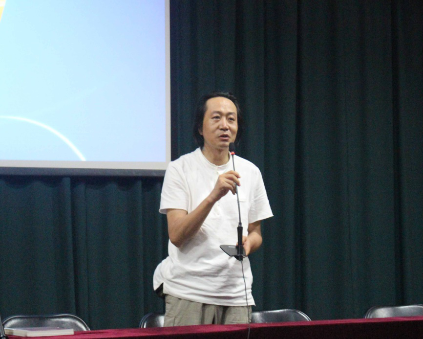 最后,韩志强教授作了有关大广赛相关知识的讲座。韩教授介绍了第九届大广赛的基本情况和参赛注意事项,指出大广赛是一场激发创意、激荡思维、挑战自我的比赛,并通过自身设计的有关平遥的现实案例,由点及面的讲述了设计的要点和注意事项。