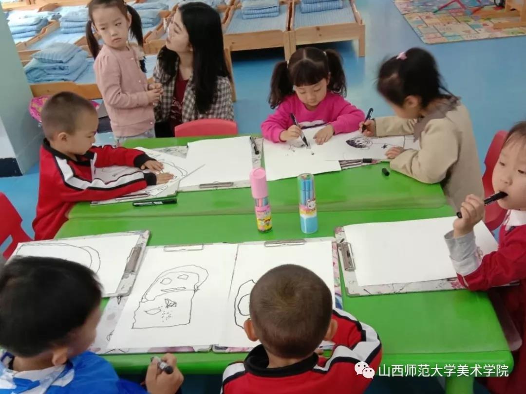 青年志愿者协会的4名志愿者于2019年5月9日在山西师范大学附属幼儿园小一班举办了“大手拉小手,画可爱的我”育幼助教活动。