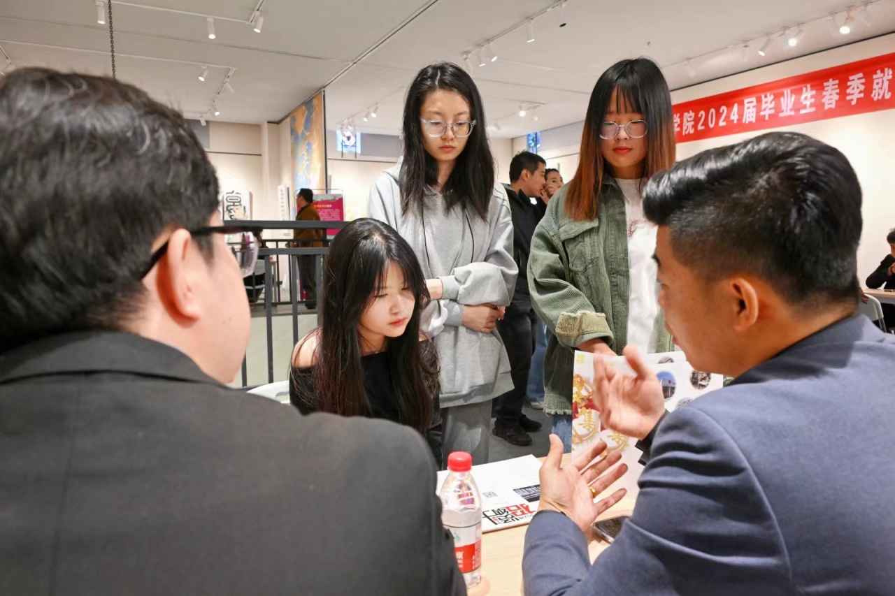 为深入贯彻落实党中央、国务院关于做好高校毕业生就业工作决策部署,积极搭建毕业生与用人单位双向选择对接平台,全力做好打游戏赚钱 2024届毕业生就业工作。4月24日,打游戏赚钱 在美术馆二层举办了2024届毕业生春季就业双选会,来自我省和陕西省的10余家优质企业和单位来院揽才引智,提供就业岗位百余个,与打游戏赚钱 学科专业方向高度契合。双选会期间,打游戏赚钱 党委书记庞丽娟、副院长郑煜川(主持工作)、党委副书记刘宏超、副院长张一平、吕金光到现场调研指导,与参会单位和求职学生进行沟通交流,了解行业及企业发展情况和人才需求、毕业生就业状况。