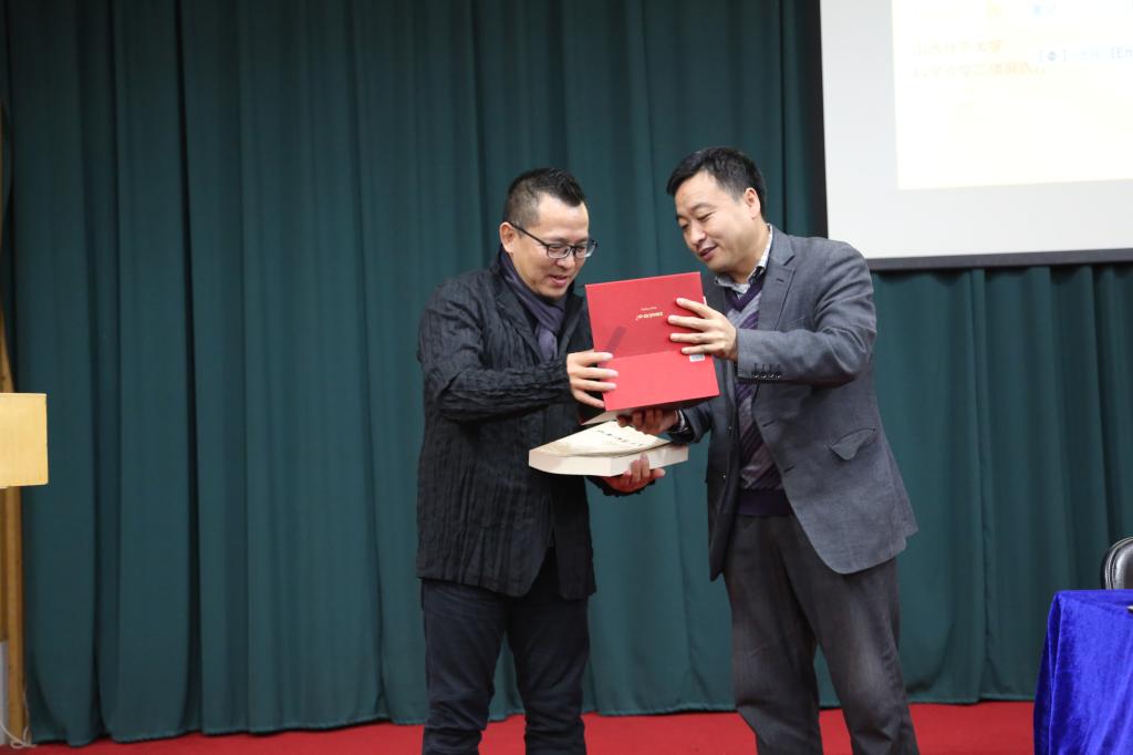 会上,李晓庵会长对韩湛宁教授做了详细介绍,代表学校向韩湛宁教授颁发了打游戏赚钱 客座教授聘书。史晋奎会长代表学校校友会赠送了山西师范大学校历和校友纪念品。