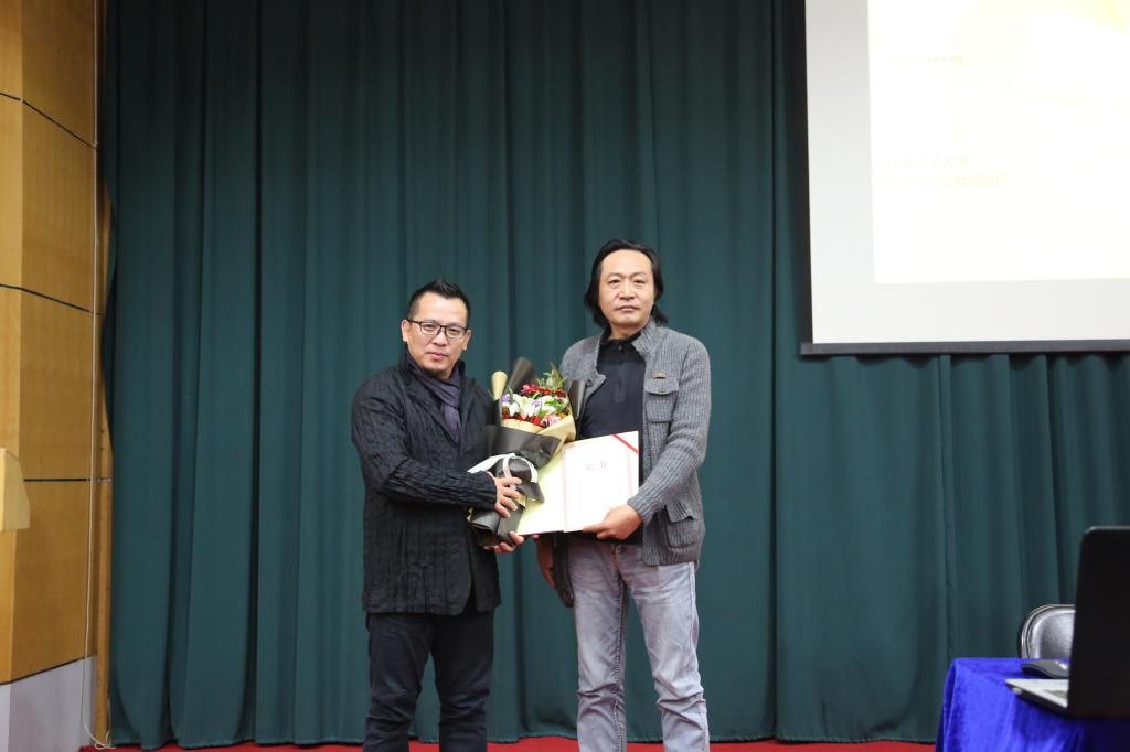 “校友讲堂”启动仪式之后,韩湛宁教授作了题为《设计驱动与创意之道》的首场讲座。韩教授以幽默生动且具有哲理的语言讲述了他的设计创作过程、理念、灵感来源等,为大家展现了一个奇妙的创意世界,生动描绘了设计创意与商业实践在新时代的碰撞与融合,使师生深受启发、受益匪浅。