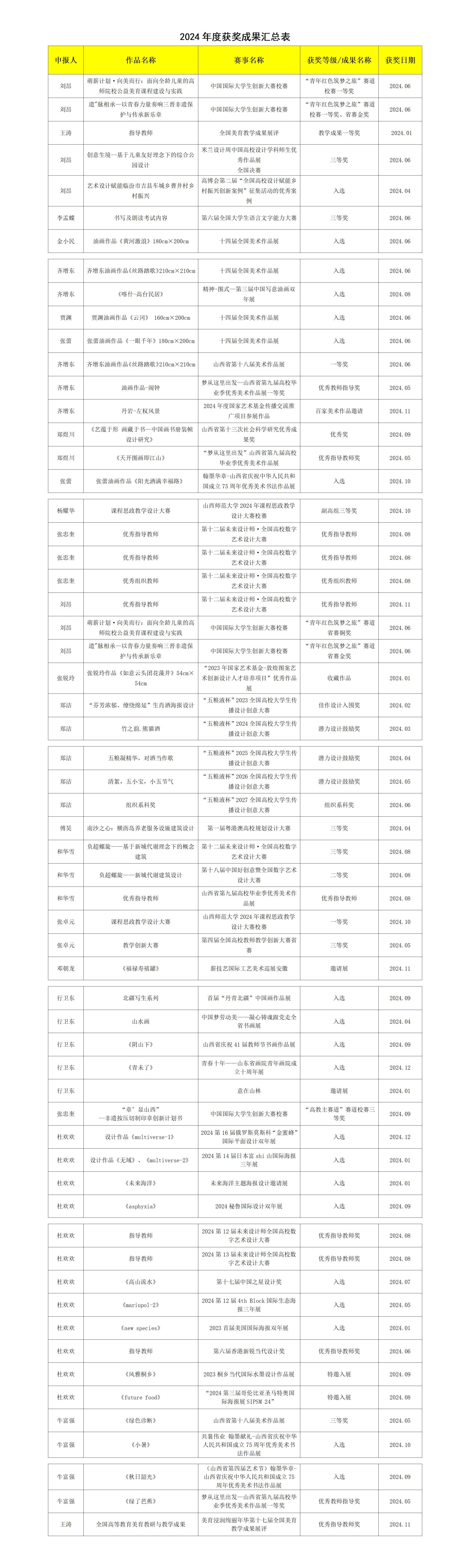 2024年度获奖成果汇总表